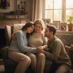 In front of a shared screen with family.
